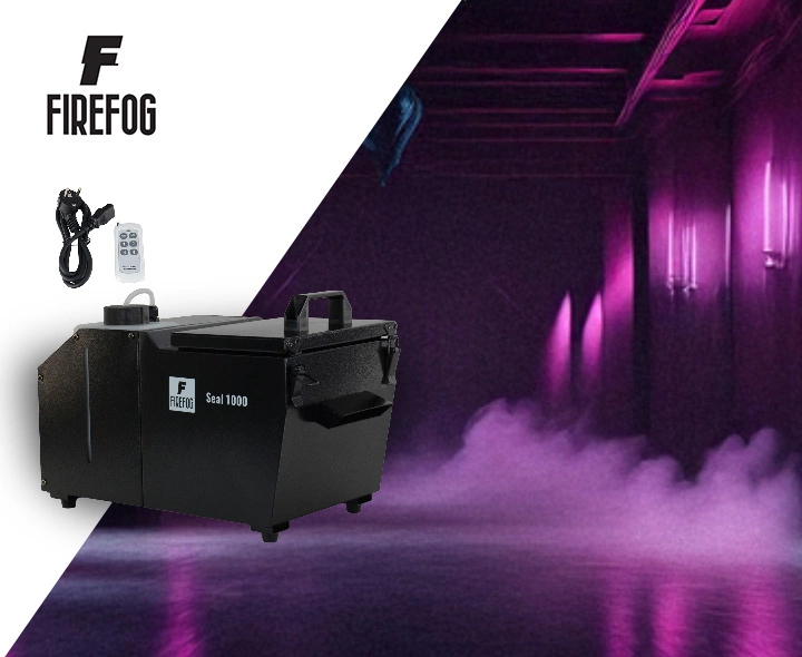 Firefog Seal 1000 to wydajna i kompaktowa wytwornica ciężkiego dymu (mgły niskiej), stworzona z myślą o zastosowaniach scenicznych, weselnych i eventowych. Pomimo niewielkich rozmiarów – zaledwie 43x 23x 27cm – urządzenie imponuje mocą i skutecznością, bez problemu radząc sobie na średnich salach weselnych, klubowych i eventowych.