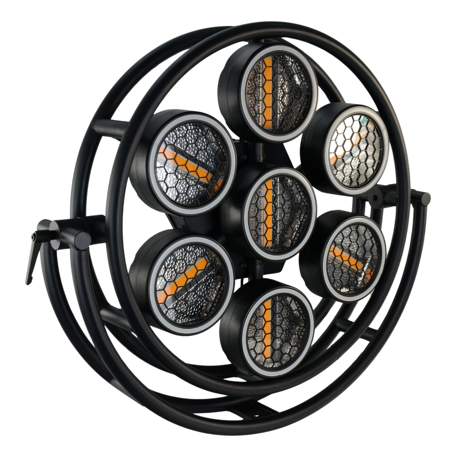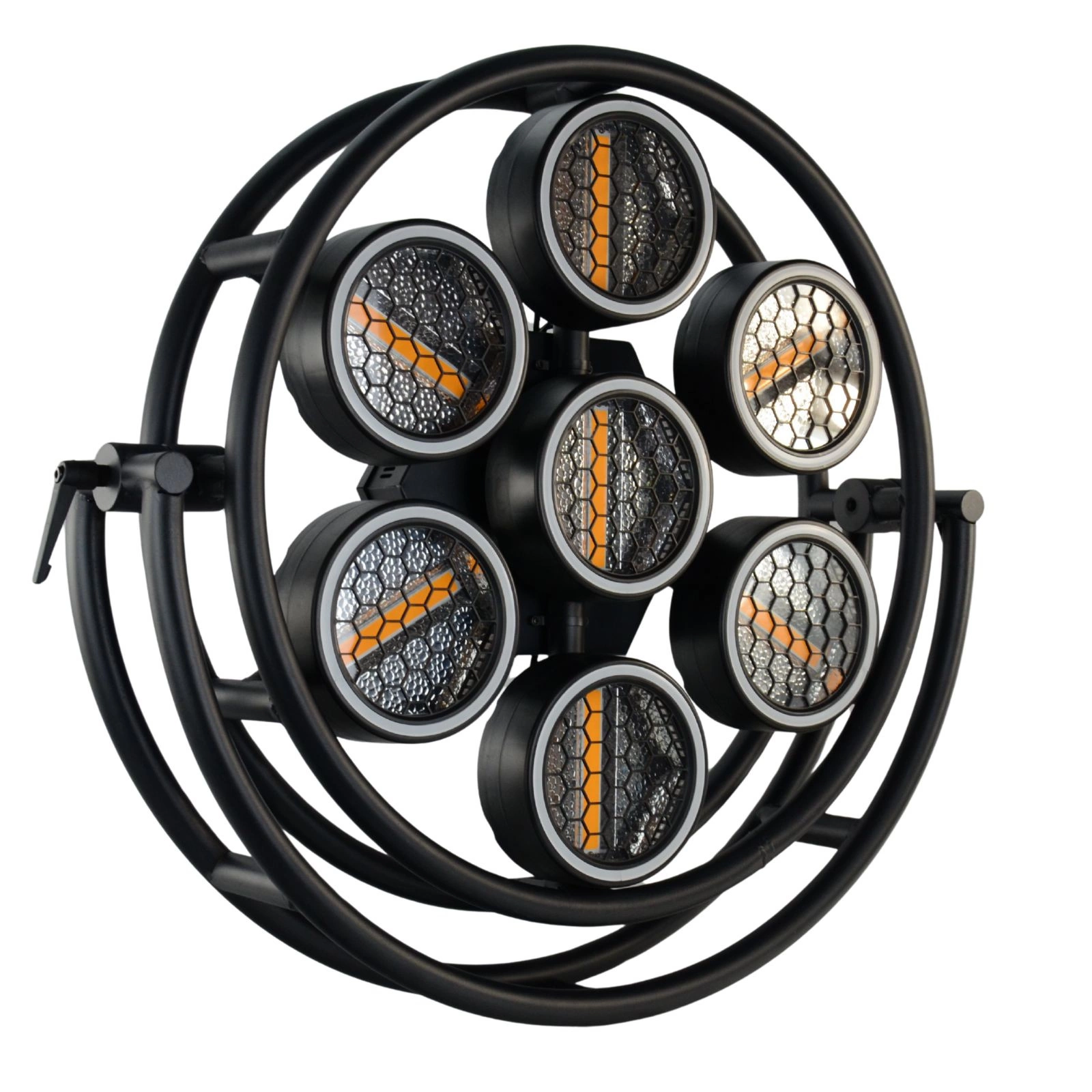 Solidna, stylowa konstrukcja: Retro R7 charakteryzuje się wytrzymałą, metalową obudową w kolorze czarnym, co zapewnia trwałość w warunkach intensywnej eksploatacji scenicznej. Jednocześnie styl retro tej lampy sprawia, że świetnie prezentuje się ona na scenie lub planie – nie tylko jako źródło światła, ale i jako element scenografii w klimacie vintage. Docenią ją zwłaszcza miłośnicy oświetlenia scenicznego retro, którzy oczekują nowoczesnych możliwości w oldschoolowej formie.