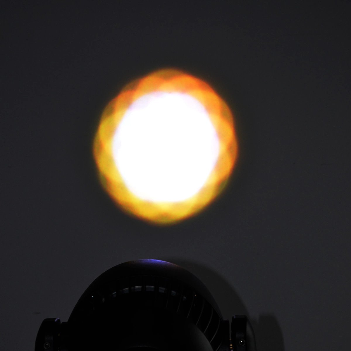 - Dynamiczny zoom (4°–60°) – regulacja kąta wiązki od bardzo wąskiej do szerokiej, co pozwala tworzyć różnorodne efekty świetlne na scenie i parkiecie.