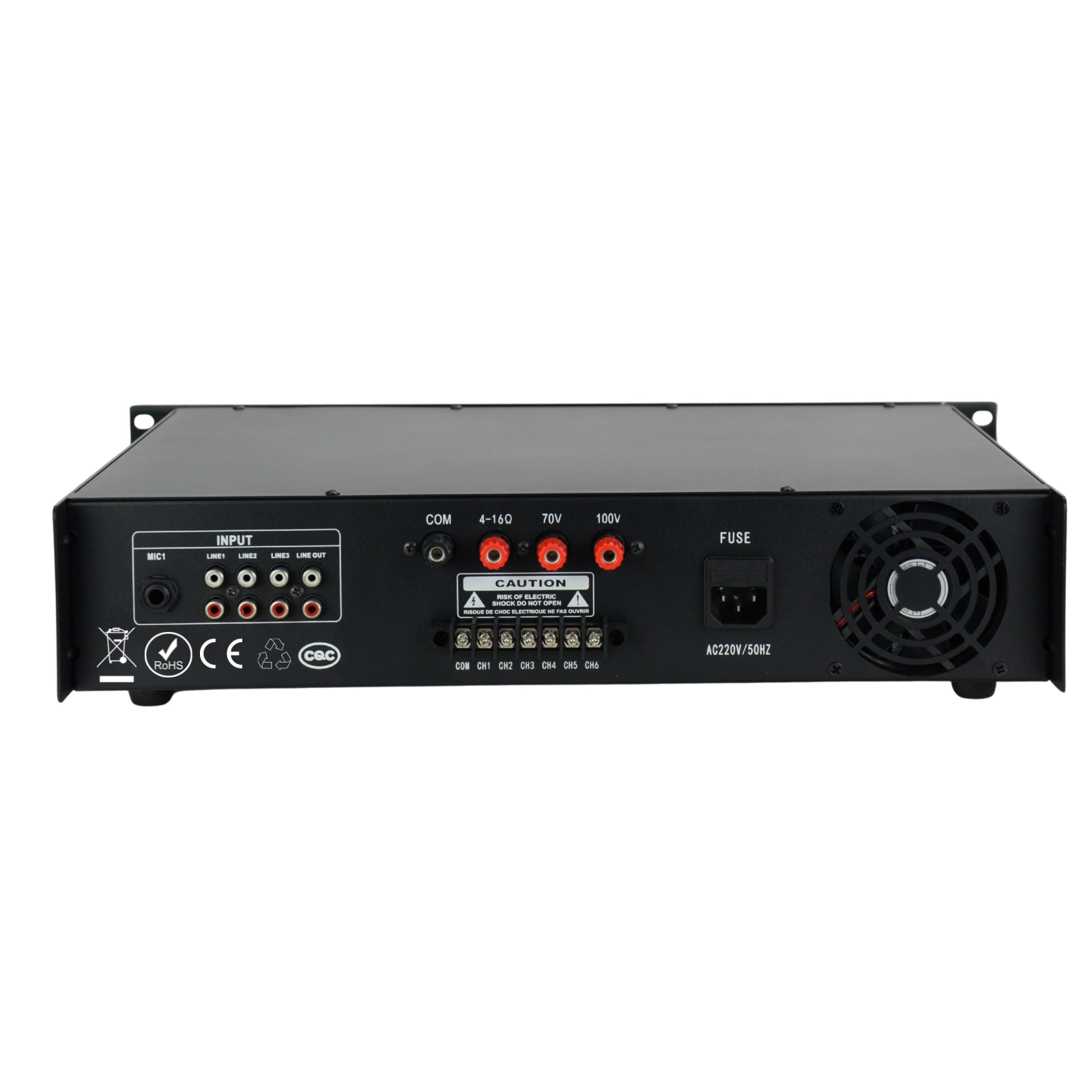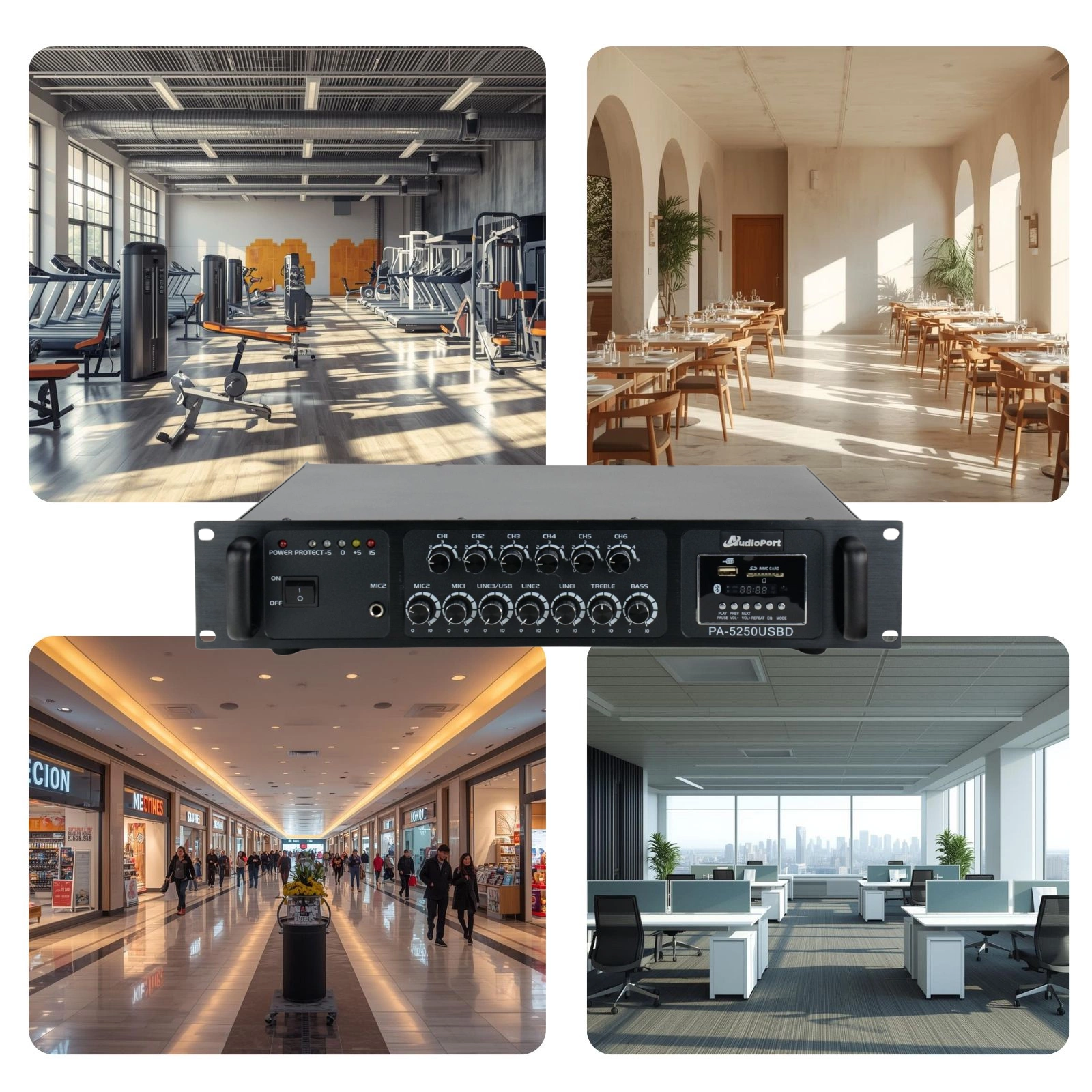 Audioport PA-5250 to profesjonalny wzmacniacz wielostrefowy klasy AB, łączący wysoką moc 250W, niezawodność i funkcjonalność w jednym kompaktowym urządzeniu. Zaprojektowany z myślą o systemach nagłośnienia 100V, doskonale sprawdza się w szkołach, biurach, restauracjach, hotelach, sklepach, a także w obiektach przemysłowych i użyteczności publicznej.