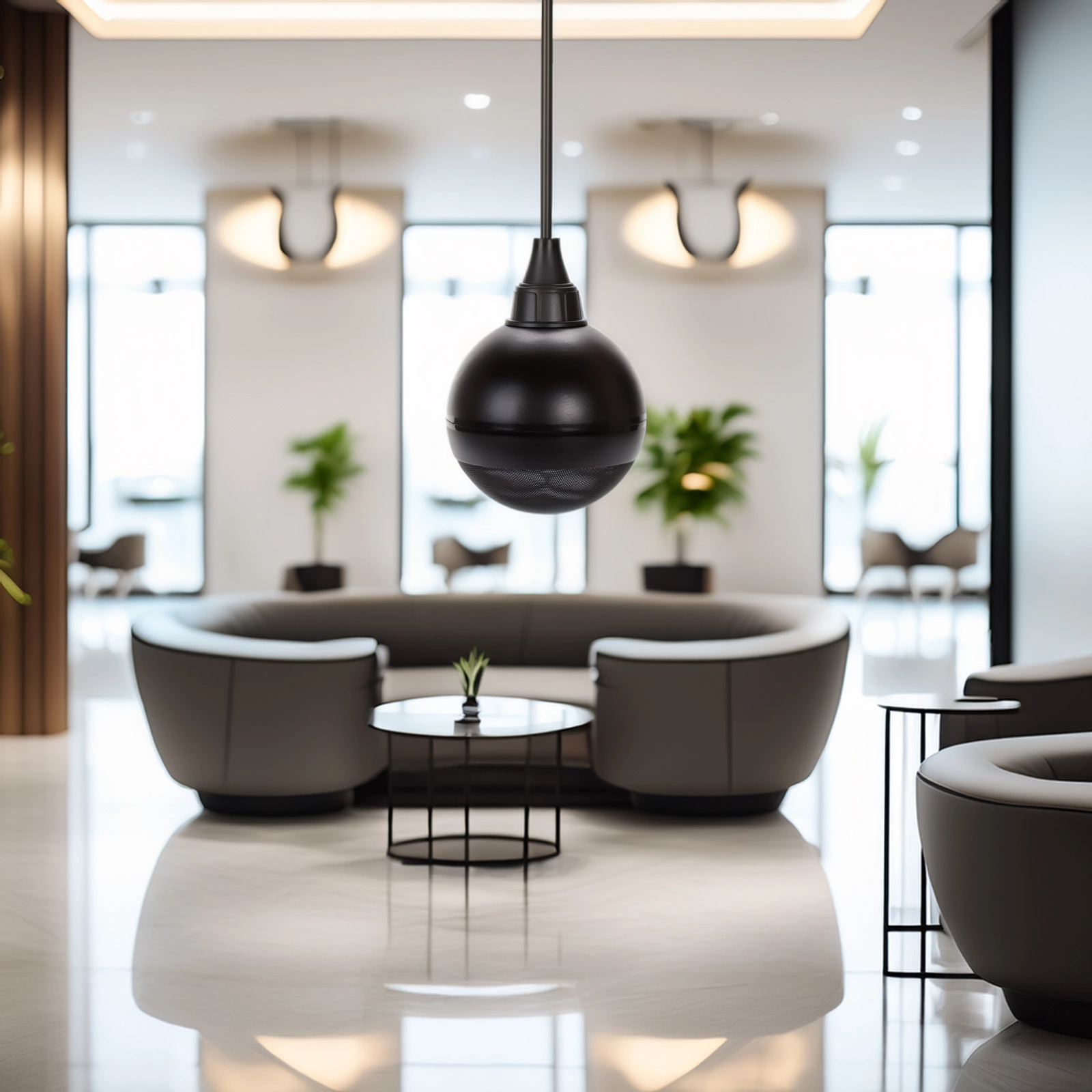 Głośnik wiszący AW15-B w kolorze czarnym marki Audioport to nowoczesne i estetyczne rozwiązanie do systemów nagłośnienia 100V, przeznaczone do profesjonalnych instalacji audio w miejscach takich jak biura, restauracje, hotele, galerie handlowe, sklepy, sale konferencyjne, centra usługowe czy przestrzenie open-space. Unikalna forma przypominająca kulistą lampę sprawia, że głośnik doskonale wpisuje się w nowoczesną architekturę i projekty wnętrz, jednocześnie podkreślając ich styl i elegancję.