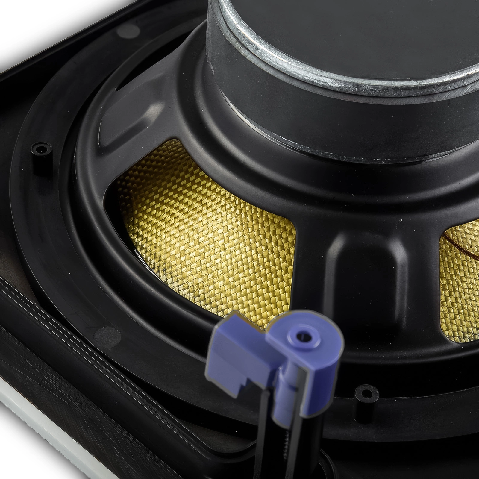 Obudowa wykonana z Pure Virgin ABS charakteryzuje się wysoką trwałością, odpornością na odkształcenia oraz stabilnością akustyczną.