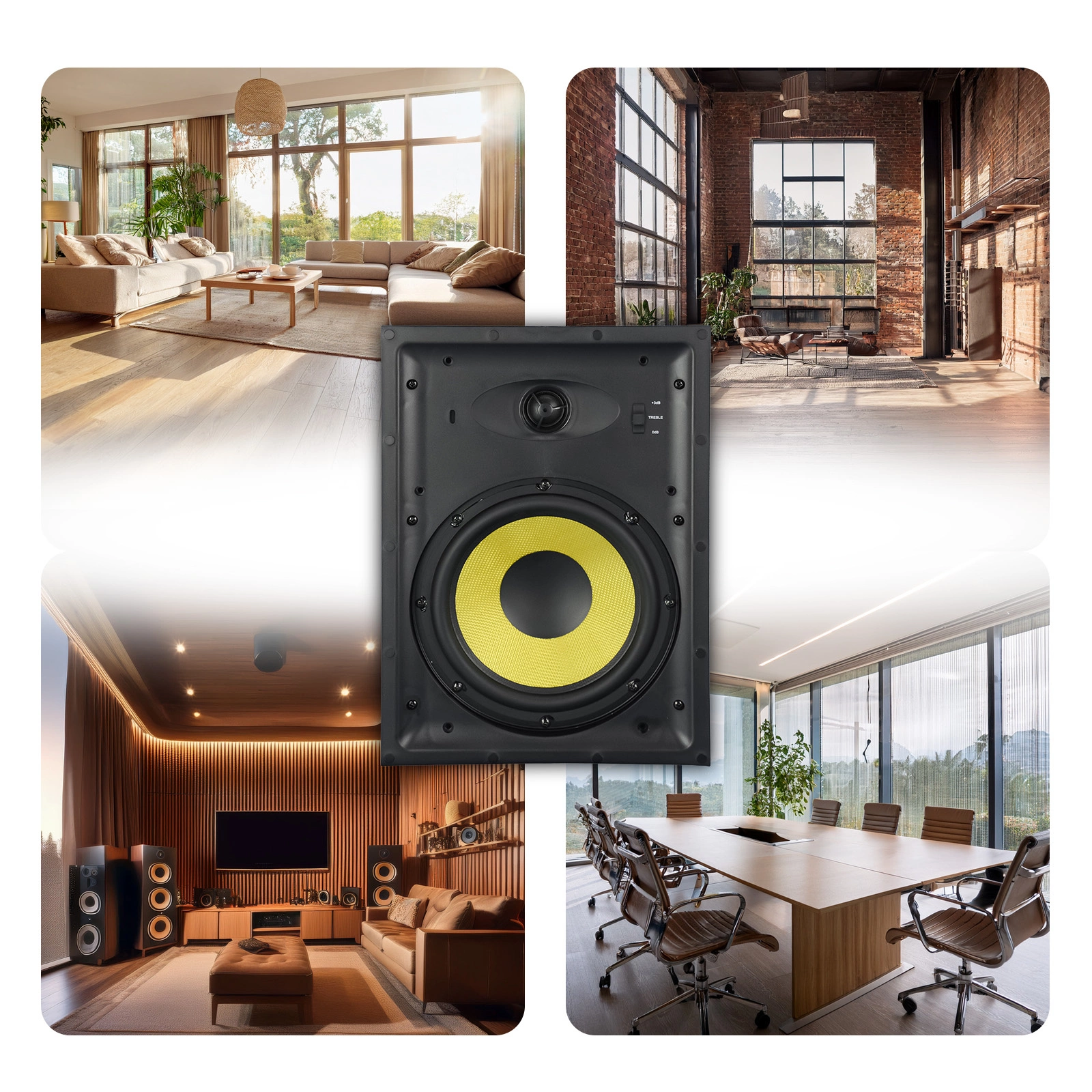 Audioport–100W prostokątny bezramowy głośnik 8" do zabudowy ścienno-sufitowej i kolumn audio