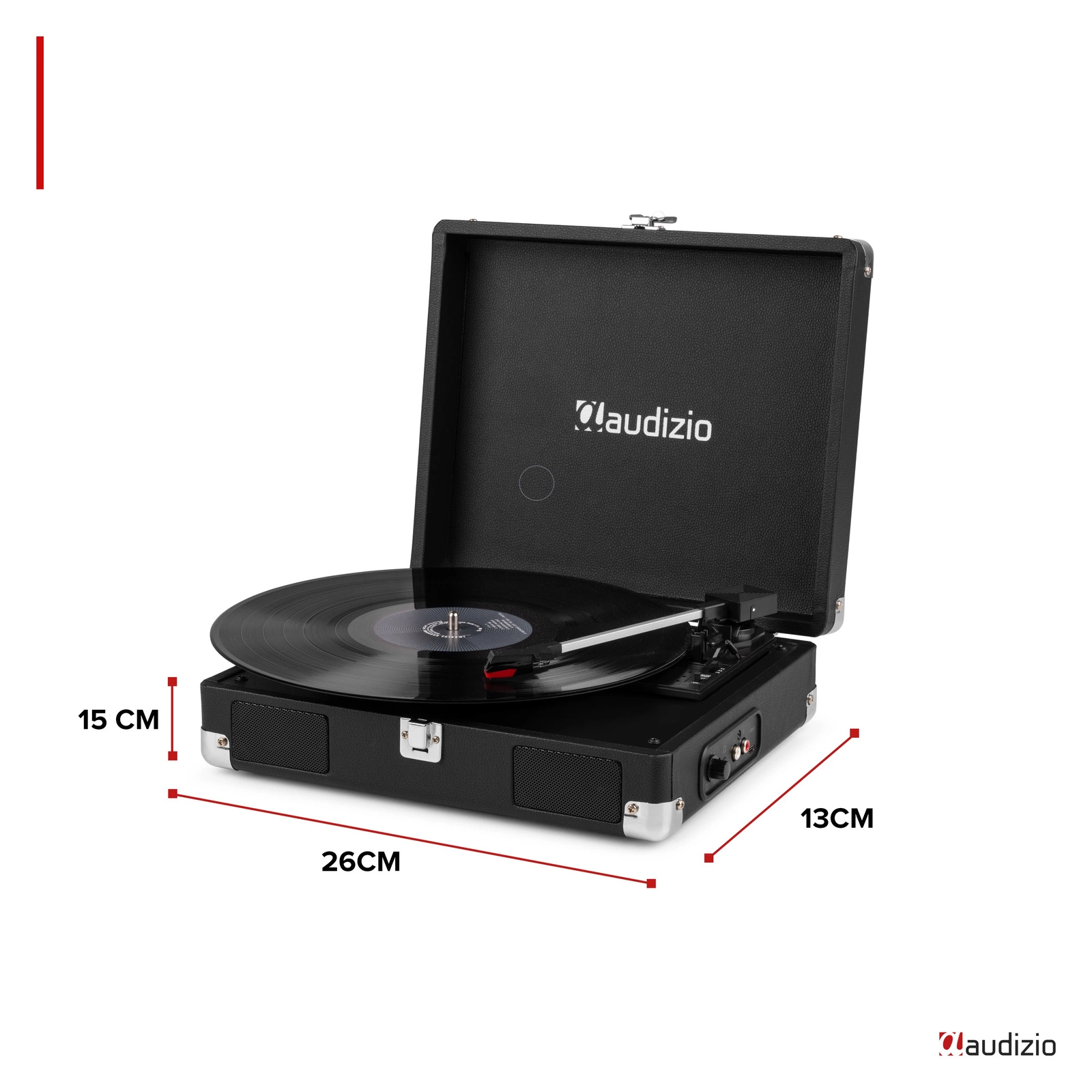 Gramofon Audizio RP111BK retro walizkowy – czarny, przenośny, z wbudowanymi głośnikami stereo
