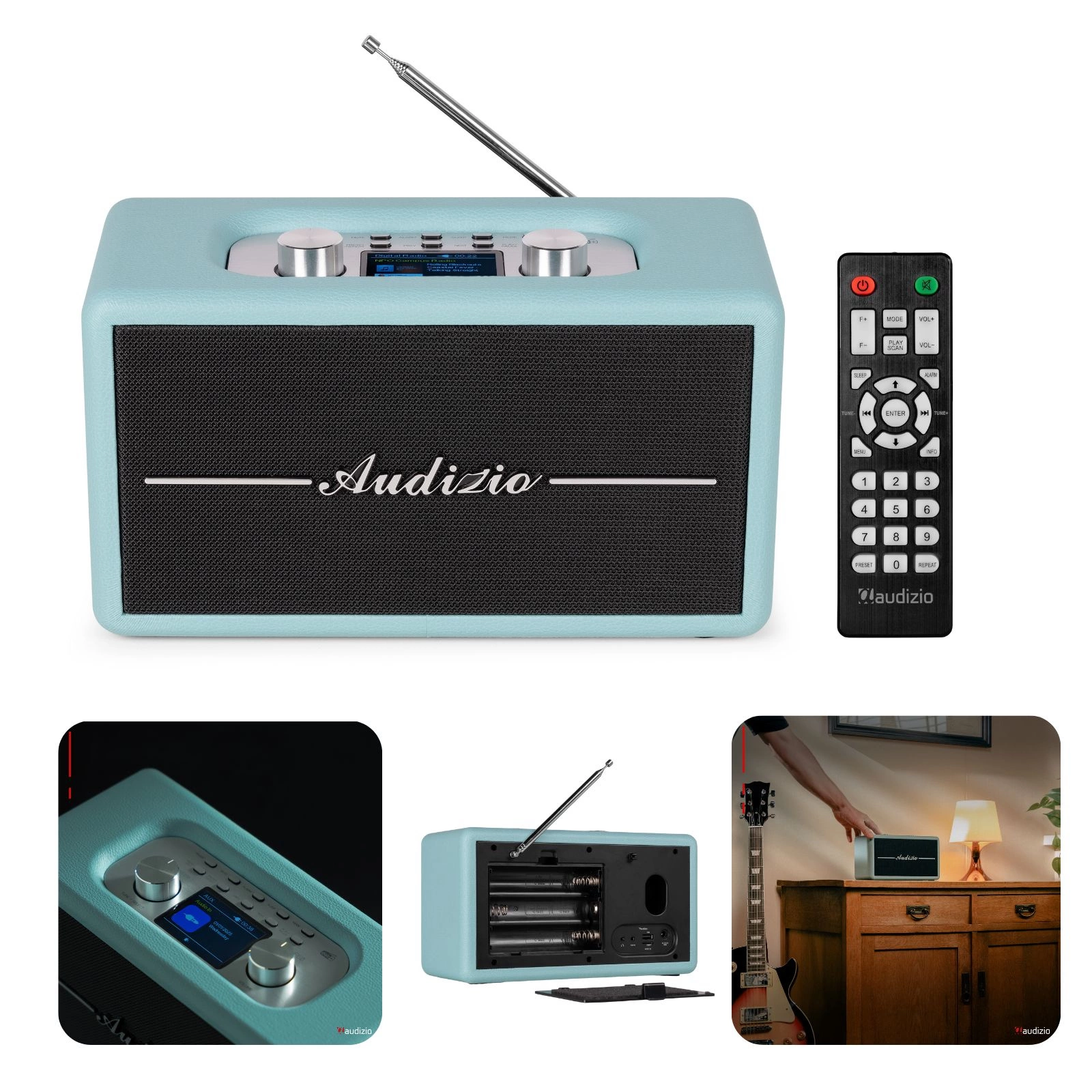 Audizio Tune60 – radio retro Vintage z bluetooth, DAB+, FM, wbudowane głośniki, niebieski