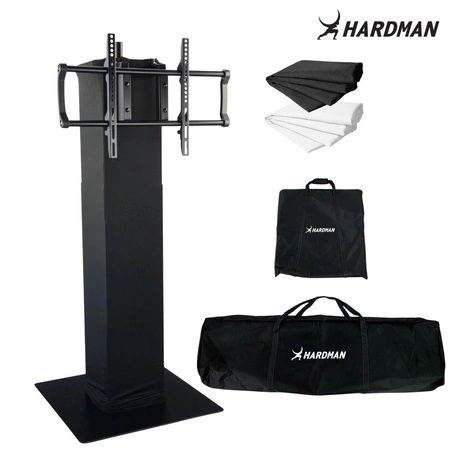 Czarny totem z uchwytem TV i akcesoriami Hardman PTS25W-TV
