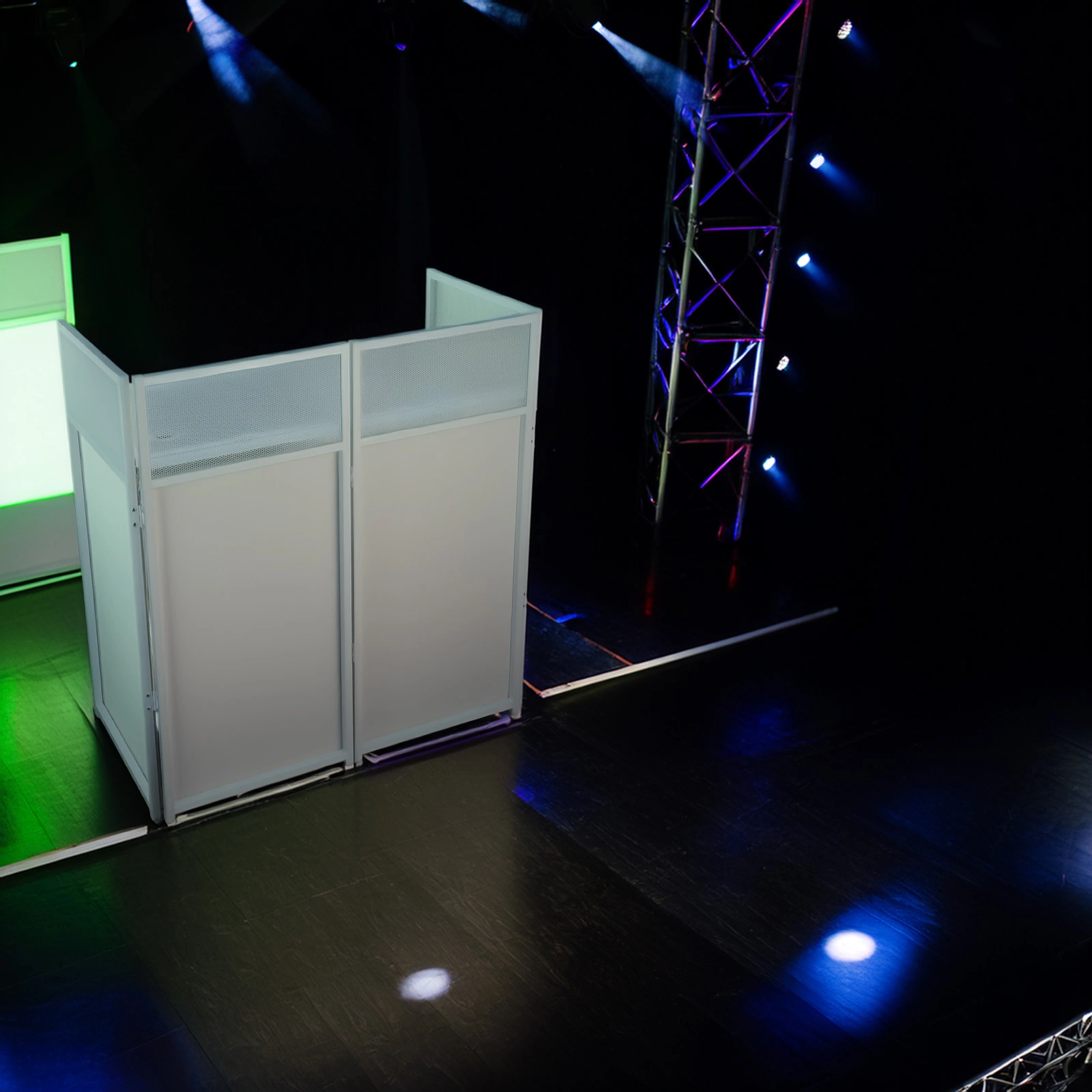 Możliwość wykorzystania zarówno jako parawan DJ (DJ facade), jak i stół DJ