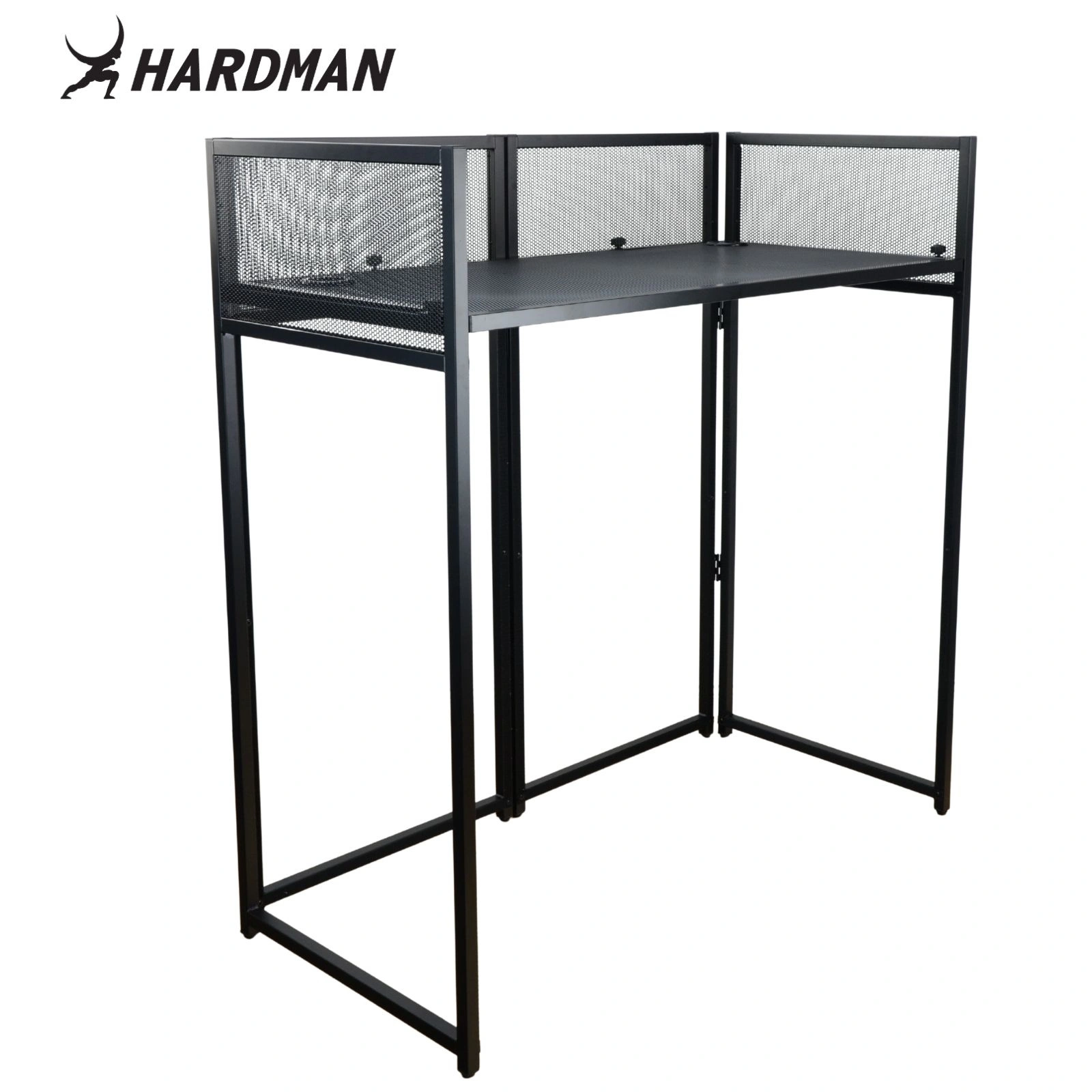Stand DJ – nowoczesne i funkcjonalne stanowisko DJ-a dostępne w kolorze czarnym. Idealne rozwiązanie na wesela, eventy, imprezy firmowe, koncerty i występy klubowe.