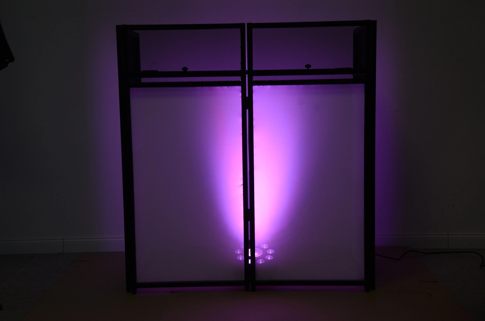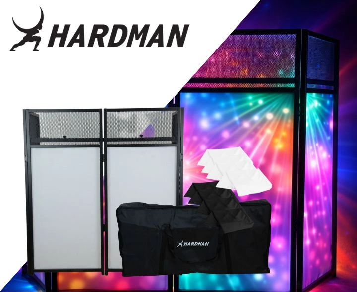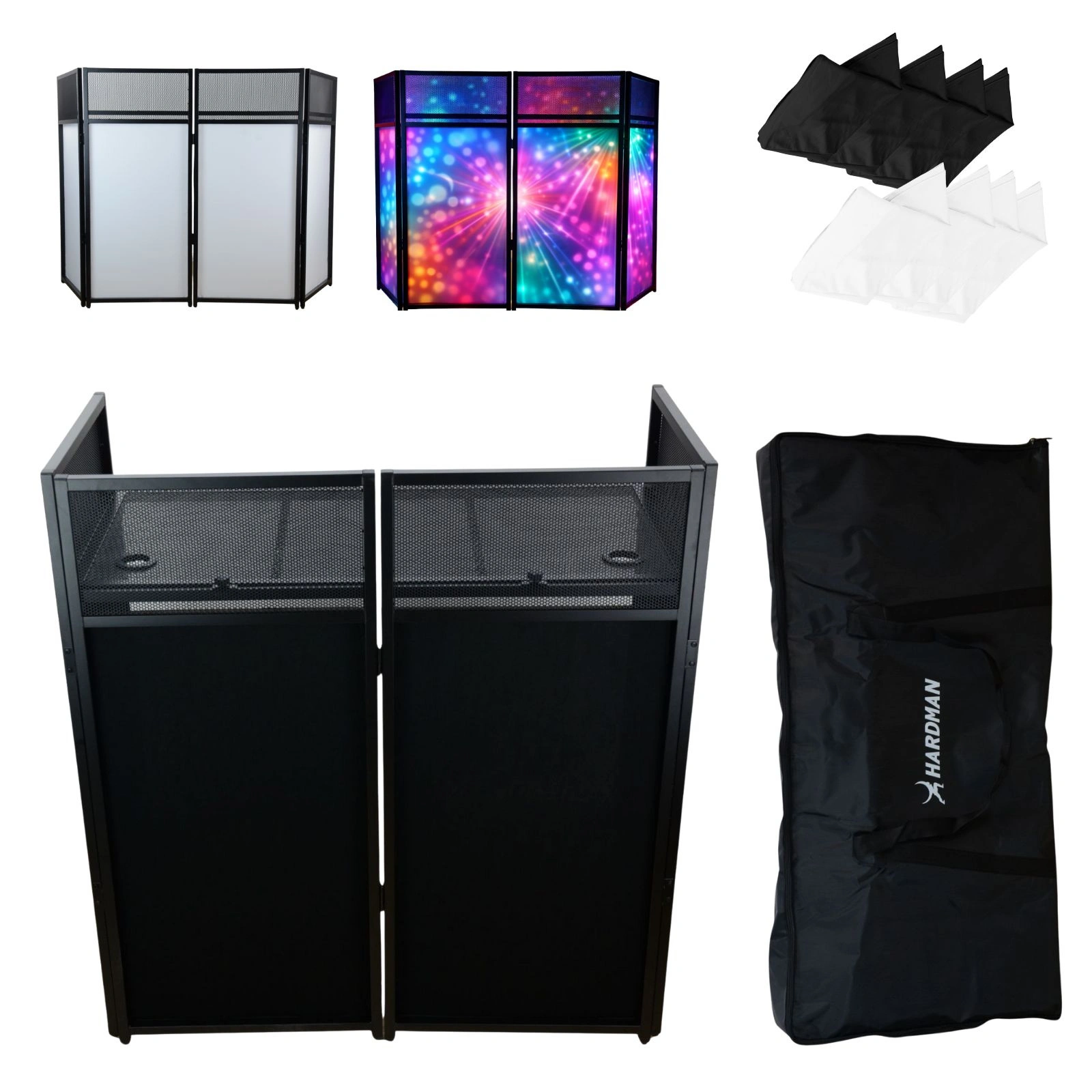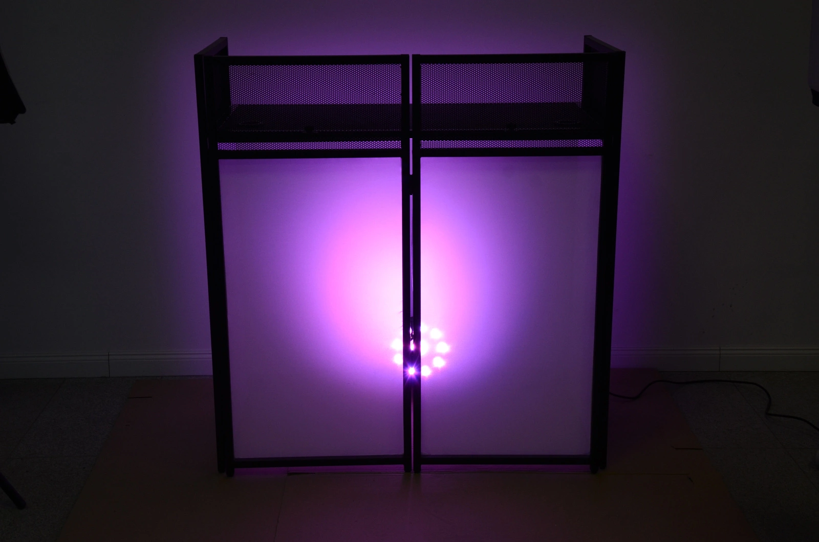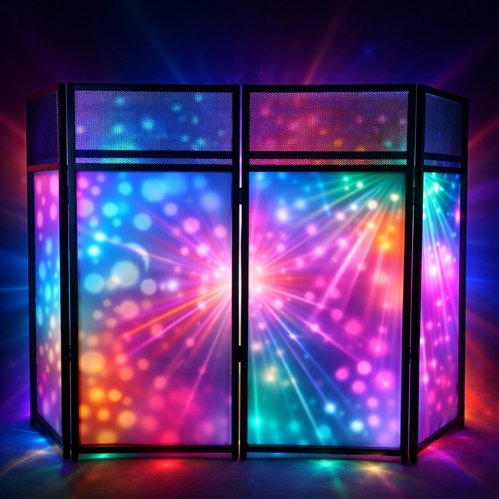 - Możliwość wykorzystania zarówno jako parawan DJ (DJ facade), jak i stół DJ