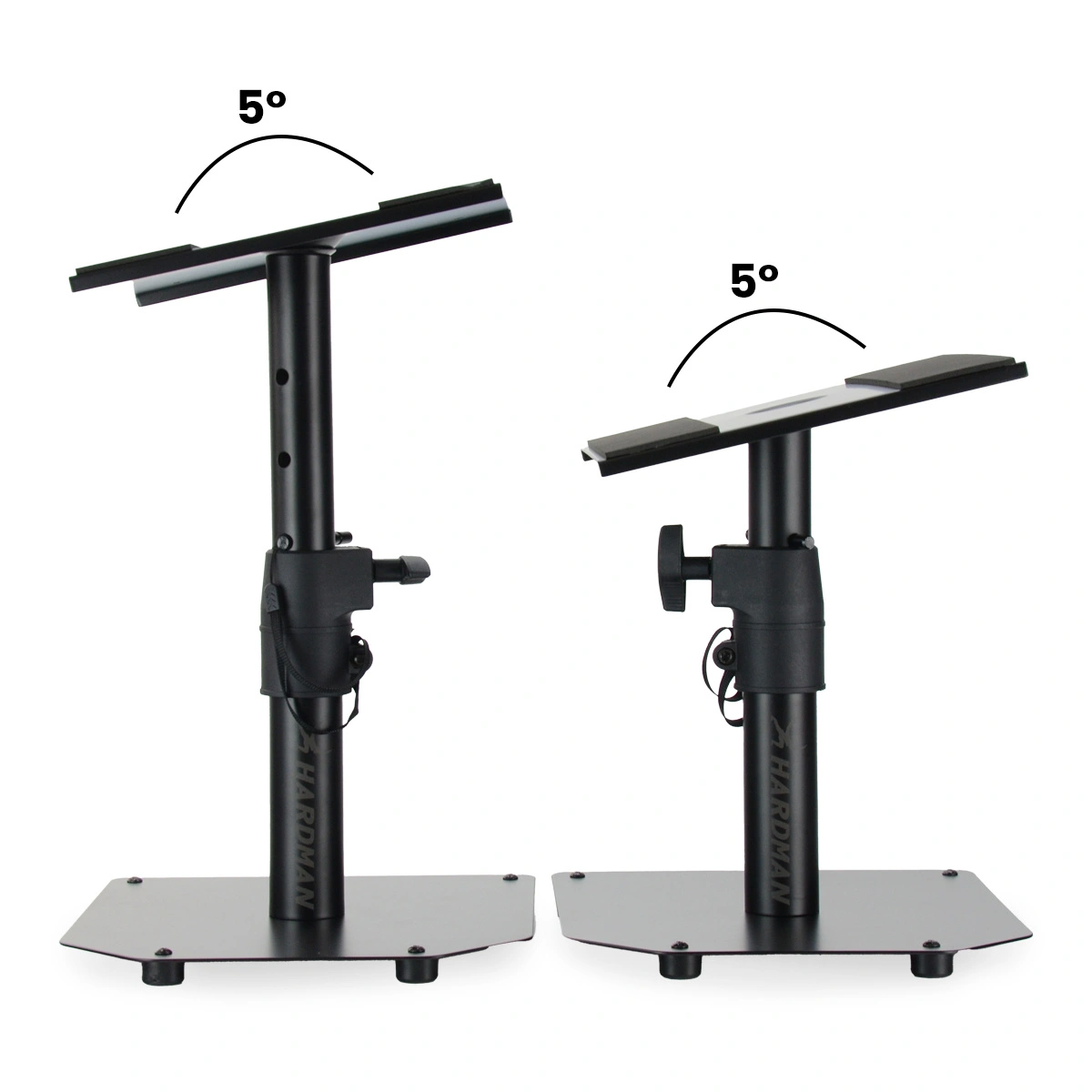 Statywy pod monitory studyjne HLM42 to solidne i funkcjonalne podstawy stworzone z myślą o wymagających użytkownikach – muzykach, realizatorach dźwięku, producentach oraz pasjonatach wysokiej jakości odsłuchu. Dzięki regulacji wysokości i kąta nachylenia platformy, zapewniają optymalne ustawienie monitorów studyjnych w każdej przestrzeni – zarówno w profesjonalnym studio, jak i w domowych warunkach.