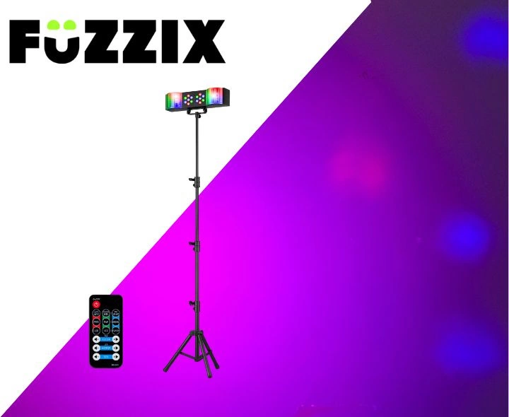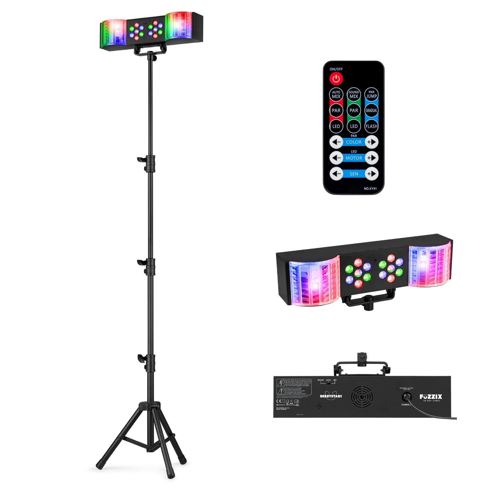 Chcesz bez wysiłku zapewnić swojej imprezie efektowne i klimatyczne oświetlenie? Z Fuzzix DerbyStar1 masz w domu prawdziwego wszechstronnego gracza i nie potrzebujesz już żadnego innego efektu świetlnego. Ten partybar oferuje efektowne połączenie: efekt Derby po bokach z 2 × 3 W diodami LED oraz centralny efekt wash z 14 diodami RGB. Dodatkowo na 14 diodach LED możesz ustawić efekty stroboskopowe, fade i jump. Aby uzyskać szerokie rozproszenie efektów świetlnych, umieść partybar na statywie. Dzięki temu możesz ustawić pożądaną wysokość (maks. 171 cm) i skierować go w wybranym kierunku podczas zabawy.