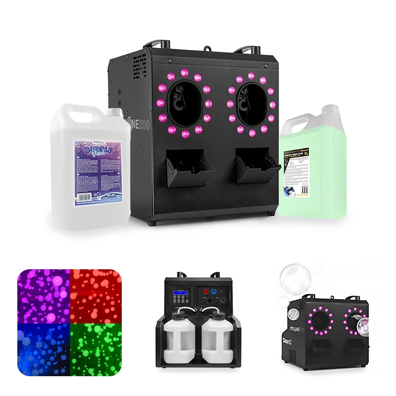 BeamZ Cyclone200 – Profesjonalna wytwornica baniek z dymem i efektem LED w zestawie i z płynami