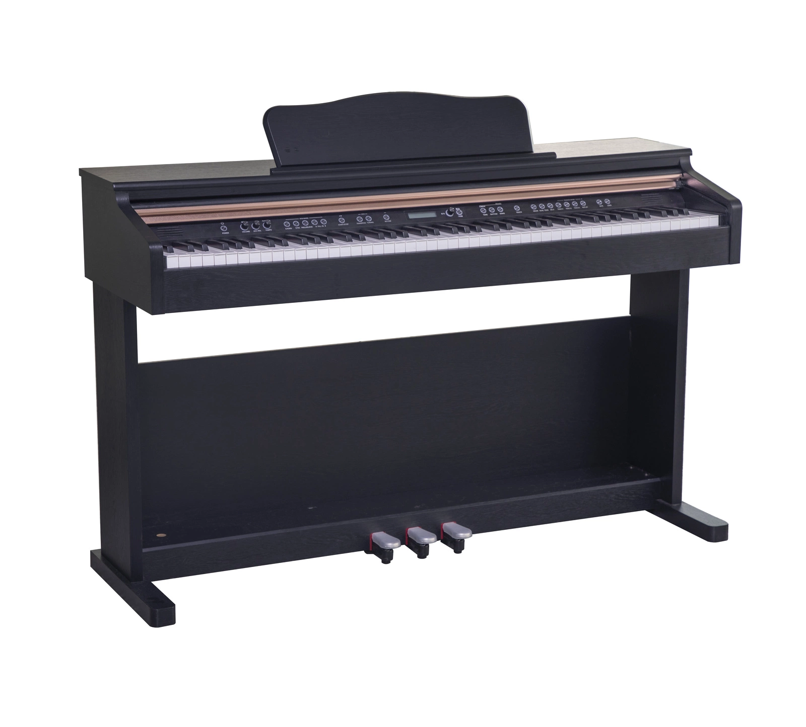 Trzy pedały (una corda, sostenuto, sustain) w standardzie pianina klasycznego – umożliwiają pełnię ekspresji i technik gry (wyciszanie dźwięku lewym pedałem, podtrzymywanie wybranych dźwięków środkowym oraz wydłużanie wybrzmiewania wszystkich dźwięków prawym pedałem).
