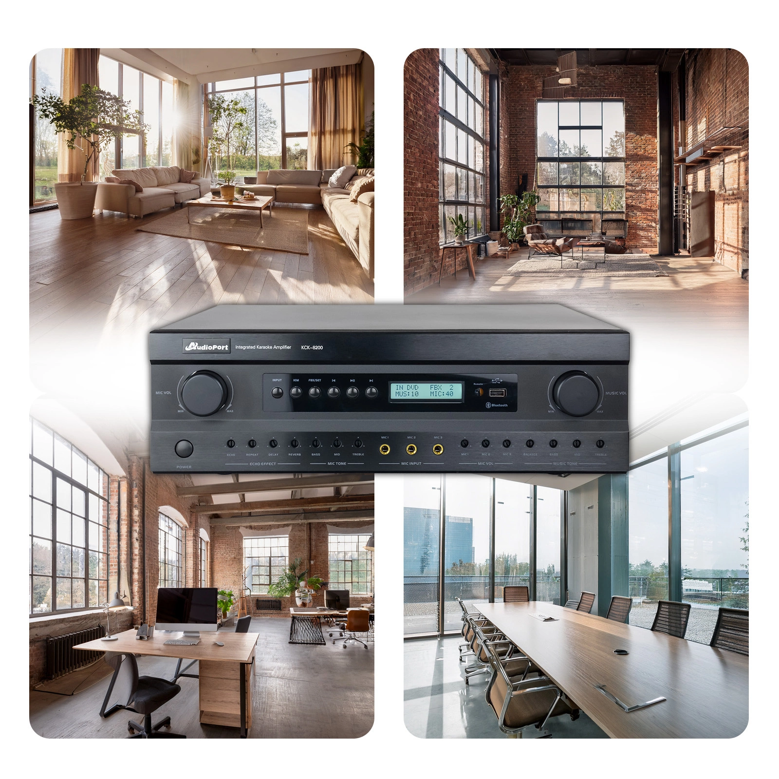 Wzmacniacz Audio Karaoke DSP KC-8200 to nowoczesne urządzenie dla wymagających użytkowników. Sprawdzi się jako wzmacniacz do karaoke, amplituner audio do domu i klubu, a także jako profesjonalny wzmacniacz estradowy. Dzięki technologii DSP, mocnym końcówkom mocy oraz pełnemu zestawowi wejść analogowych i cyfrowych zapewnia niezawodne, krystalicznie czyste brzmienie.
