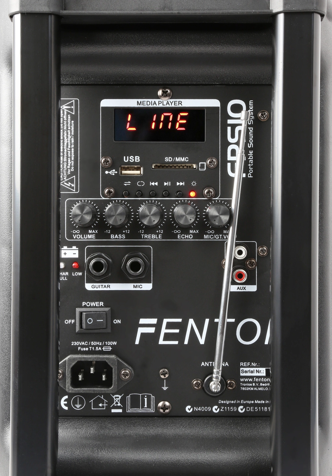 Dzięki temu mobilnemu systemowi nagłośnieniowemu z technologią BT możesz cieszyć się ulubioną muzyką wszędzie. Ten kompaktowy, ale kompletny, przenośny system zawiera wszystko, czego można oczekiwać, takie jak wzmacniacz, wejścia audio, port USB, gniazdo kart SD, bezprzewodowy mikrofon VHF i pilot zdalnego sterowania. Możesz przesyłać muzykę strumieniowo bezpośrednio z urządzenia mobilnego lub korzystać z wbudowanego odtwarzacza MP3. Ten system typu „wszystko w jednym” działa z sieci lub z wbudowanego akumulatora 12 V. Idealny system dla muzyków, artystów estradowych i organizatorów imprez.