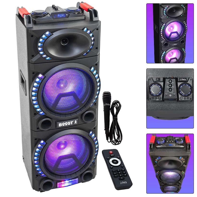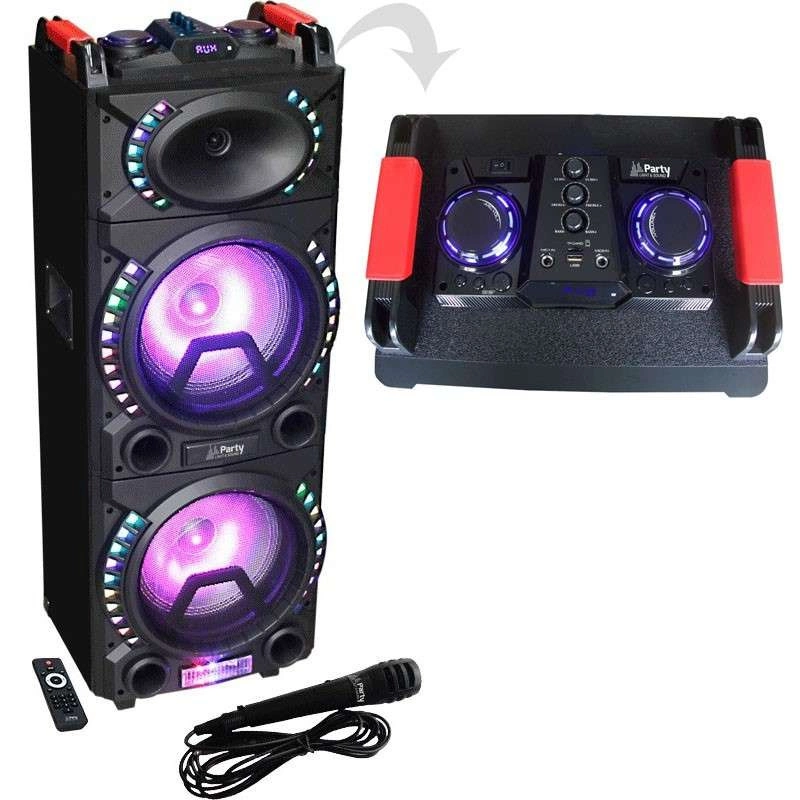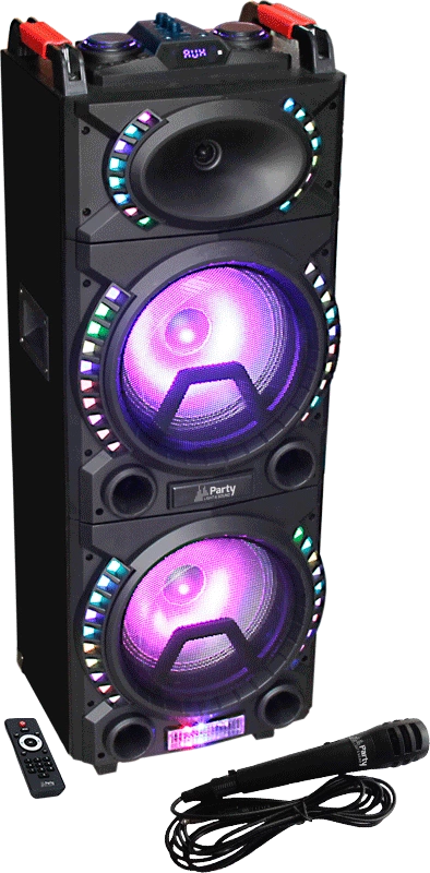 Kolumna głośnikowa Bluetooth 500W z mikrofonem i podświetleniem LED to idealne rozwiązanie dla wszystkich, którzy szukają mocnego nagłośnienia na imprezy, karaoke, spotkania plenerowe czy domowe przyjęcia. Dzięki dużej mocy 500W i dwóm głośnikom 10” otrzymasz czysty, dynamiczny dźwięk z potężnym basem, który wypełni każde pomieszczenie lub ogród.