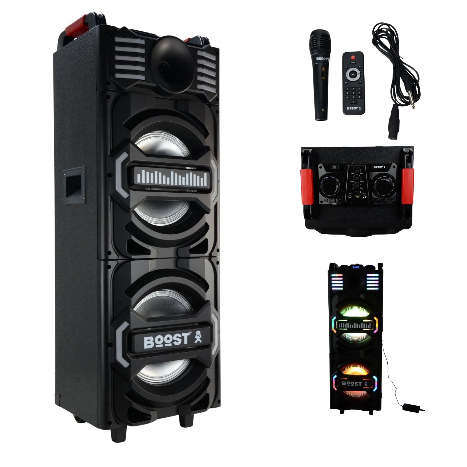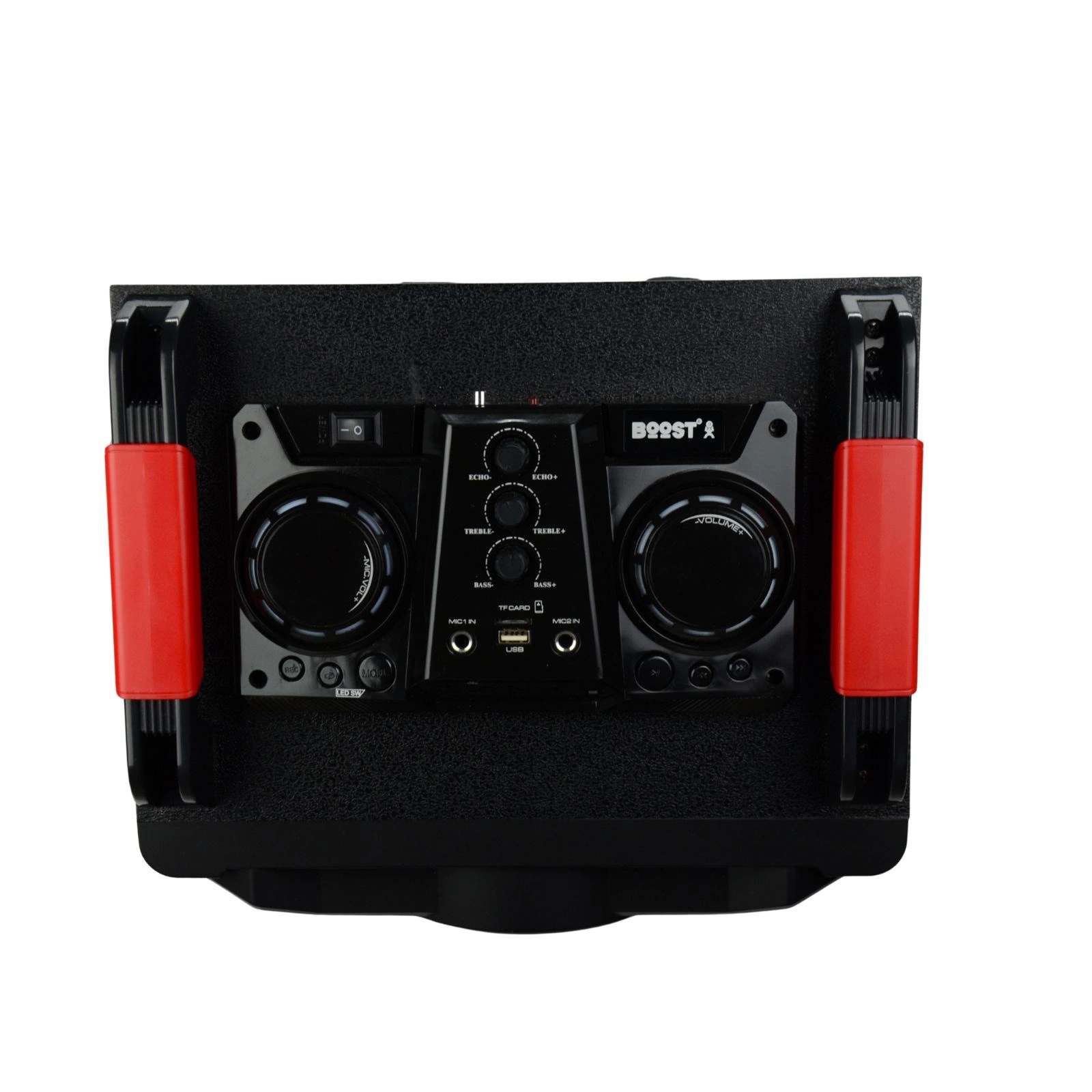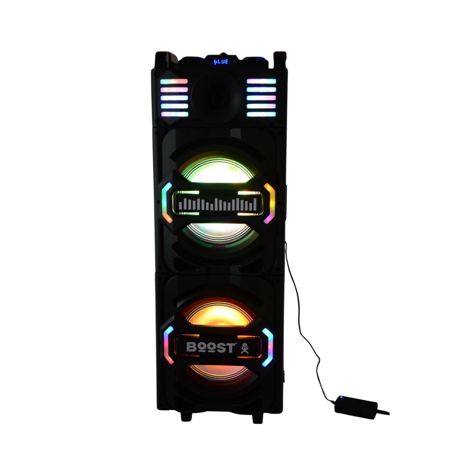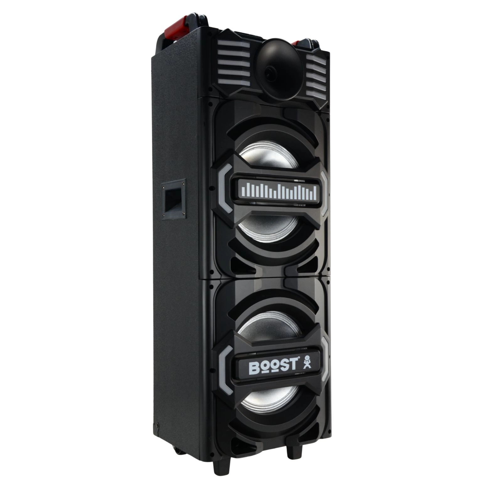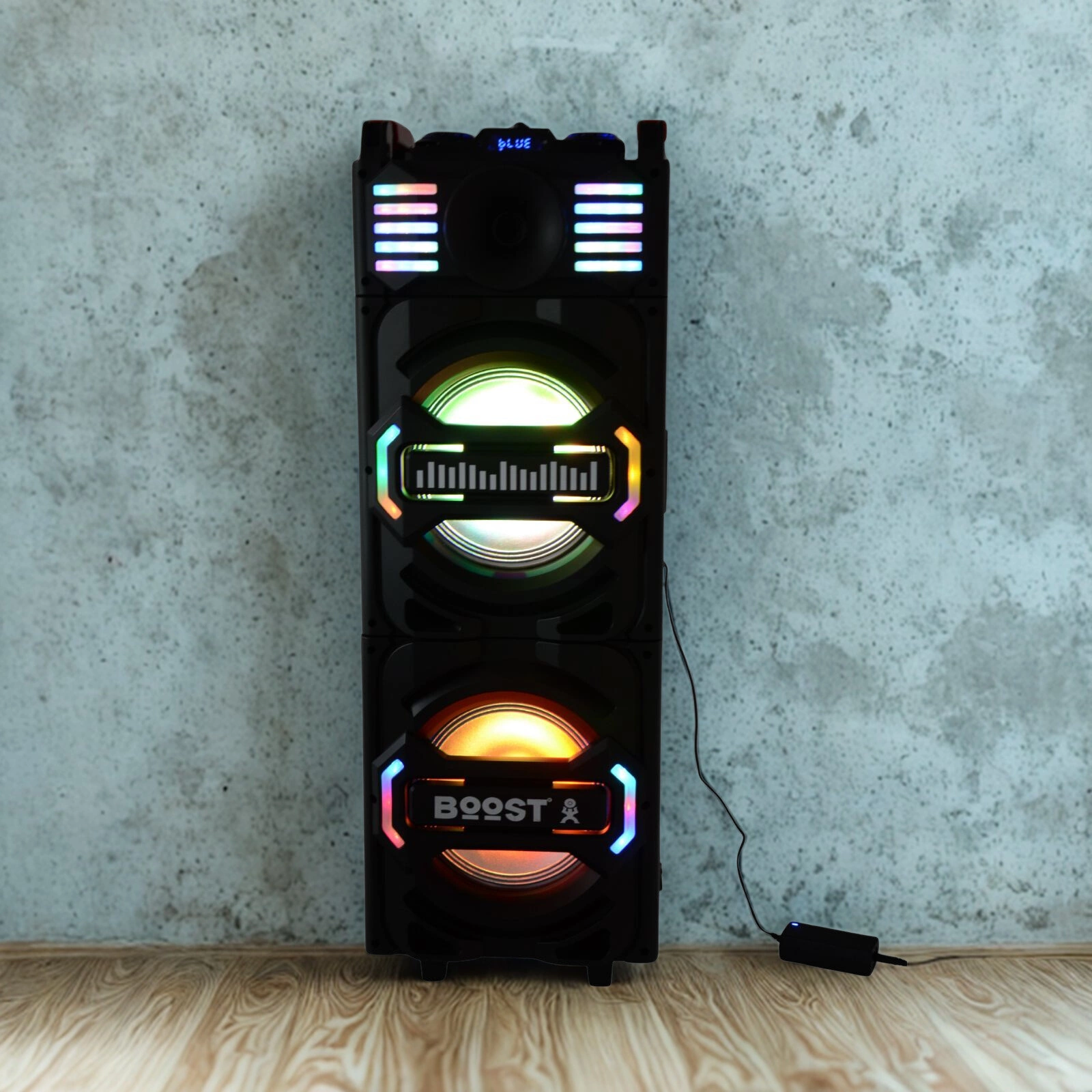 Boost StupDJ10 – aktywna kolumna głośnikowa 2x10” 500W z mikrofonem i LED to nowoczesny głośnik imprezowy stworzony z myślą o wieczornych rozrywkach, karaoke, domowych imprezach i nagłośnieniu plenerowym. Dzięki drewnianej obudowie oferuje czysty, pełny dźwięk i mocny bas, który zachwyci każdego miłośnika muzyki.