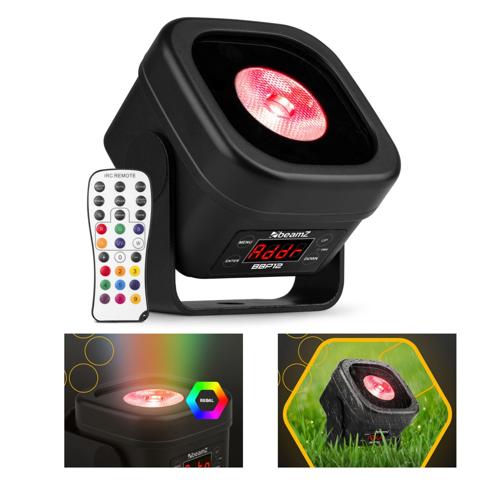 Sterowanie tym uplightem akumulatorowym jest proste i elastyczne. Dzięki bezprzewodowemu protokołowi DMX Eazylink możesz precyzyjnie ustawiać parametry i kontrolować wiele urządzeń jednocześnie (lub każde z osobna). Wolisz prostsze rozwiązanie? Skorzystaj z dołączonego pilota lub włącz tryb automatyczny z menu na wyświetlaczu. W ten sposób bez wysiłku przełączysz się między intensywnymi kolorami, płynnymi przejściami czy nawet efektem stroboskopowym z częstotliwością do 22 błysków na sekundę. Na koniec warto wspomnieć, że BBP12 jest w pełni ściemnialny, więc sam decydujesz, jak jasne ma być światło.