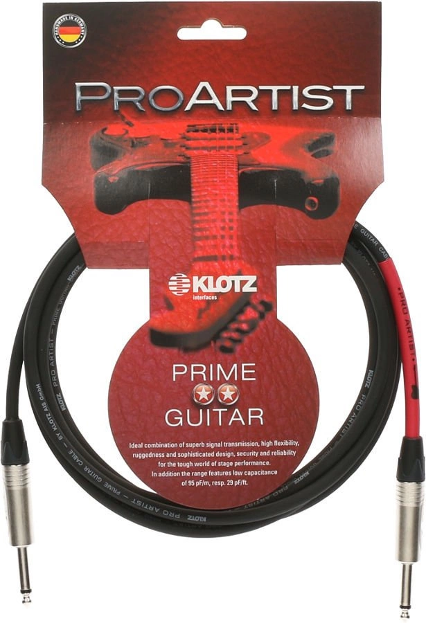 Seria gitarowych i instrumentalnych kabli Klotz PRO ARTIST oferuje niezwykle zbalansowany dźwięk. Wyprodukowany z najwyższej jakości miękkiego PVC przewód jest bardzo elastyczny i zapewnia trwałość elektryczną na całe długie życie kable. Dodatkowo rdzeń kabla ma niską pojemność wynoszącą 95pF/m. Firma Klotz wybrała złącza jack o niskiej pojemności, zabezpieczone dodatkowo kołnierzem chroniącym przed uszkodzeniami. Kolorowe oznaczenia złącz pozwalają na łatwy wybór kierunku sygnału.