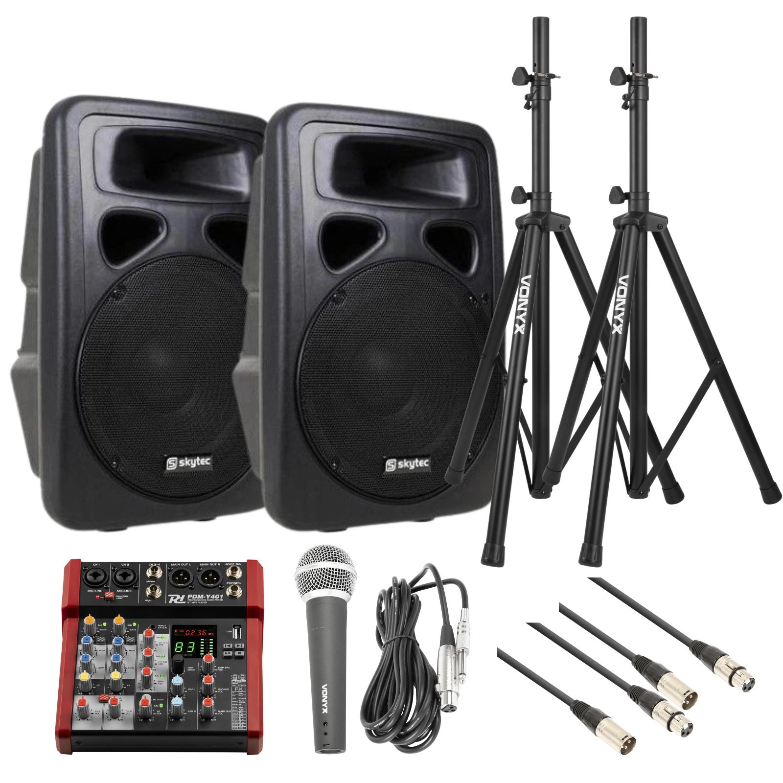 Ten podstawowy zestaw dla mobilnego DJ-a przeznaczony jest do obsługi niedużych imprez, takich jak małe przyjęcia, imprezy okolicznościowe czy eventy do ~50-80 osób. Sprzęt jest łatwy w transporcie i montażu – dwie aktywne kolumny Skytec SP1200A zapewnią wystarczającą moc i stereofoniczne nagłośnienie parkietu. Do miksera DJ można podłączyć laptop, kontroler lub odtwarzacz z muzyką (posiada on wejście USB/BT do odtwarzania mp3). Zestaw zawiera również mikrofon dynamiczny do zapowiedzi oraz komplet niezbędnych kabli. Statywy kolumnowe umożliwią odpowiednie rozstawienie głośników na wysokości. Zestaw polecany jest mobilnym DJ-om, którzy potrzebują kompaktowego i budżetowego rozwiązania na mniejsze eventy.