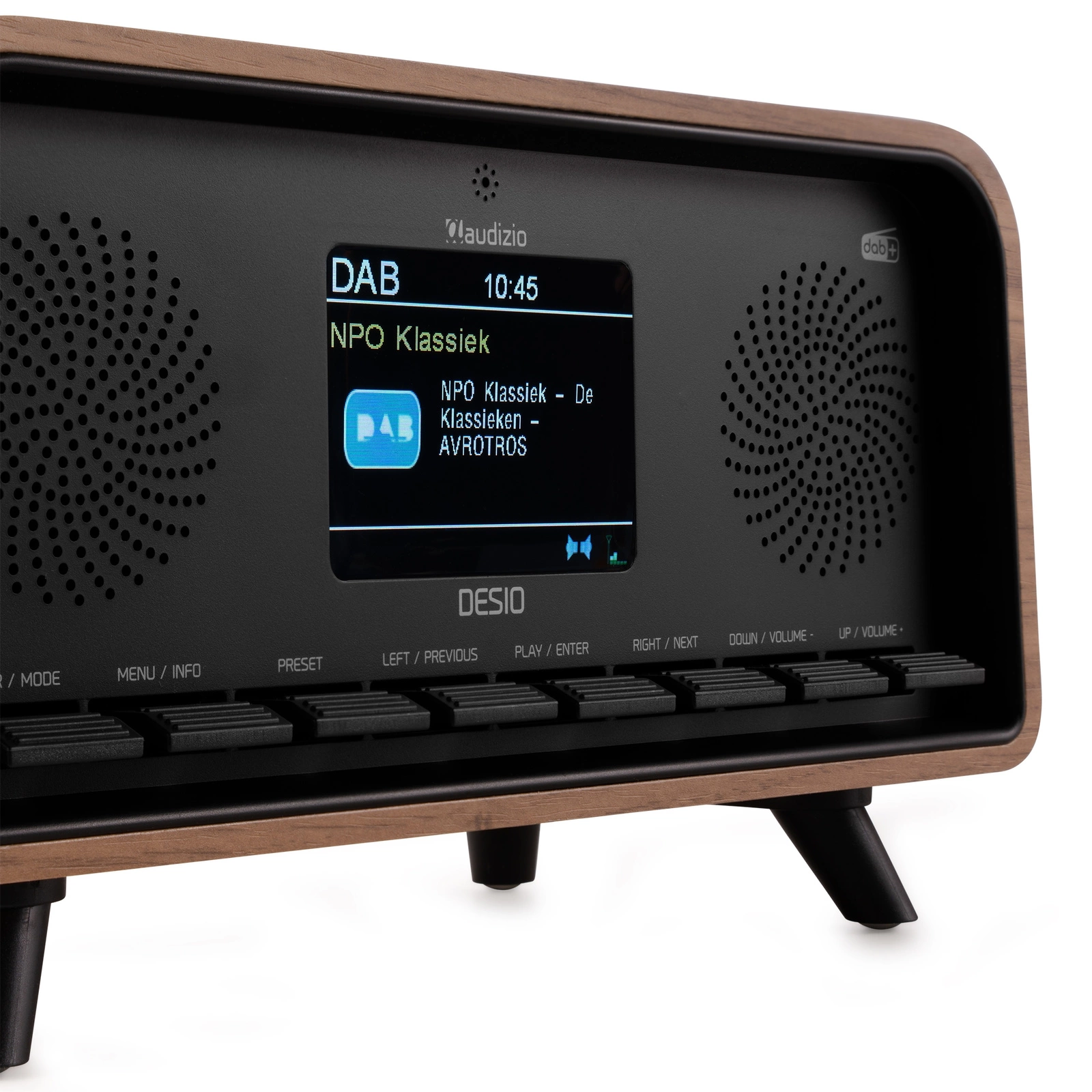 Radio Desio DAB łączy ponadczasową estetykę retro z nowoczesną technologią, zapewniając wyjątkowe wrażenia słuchowe. Włącz radio DAB+, aby cieszyć się czystym, wysokiej jakości dźwiękiem i dostępem do bogatej oferty stacji cyfrowych. Jeśli znajdujesz się poza zasięgiem sygnału cyfrowego, po prostu przełącz się na radio FM i ciesz się muzyką bez przerwy. Dzięki technologii bezprzewodowego przesyłania strumieniowego BT 5.0 możesz bez problemu przesyłać strumieniowo swoją ulubioną muzykę ze smartfona, tabletu lub komputera. Stylowe, wszechstronne i wyposażone w najnowsze funkcje radio Desio to niezbędny dodatek dla każdego miłośnika muzyki.
