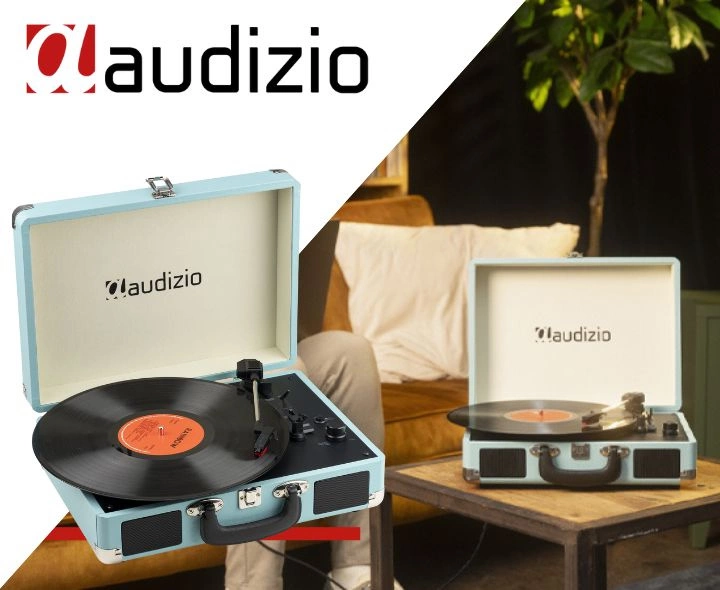 Ciesz się autentycznym dźwiękiem winylu dzięki gramofonowi Audizio RP116. Ten stylowy walizkowy model, pokryty ekologiczną skórą (PU), jest lekki i umożliwia słuchanie muzyki bez konieczności podłączania do systemu głośnikowego. Łączy się bezprzewodowo ze słuchawkami, głośnikami i innymi urządzeniami wyposażonymi w technologię Bluetooth lub z przewodowymi systemami audio i głośnikami zasilanymi. Dzięki wbudowanemu odbiornikowi Bluetooth, cyfrowa muzyka może być również strumieniowana bezprzewodowo z smartfonu, tabletu lub innego urządzenia kompatybilnego z Bluetooth i odtwarzana przez stereo głośniki.