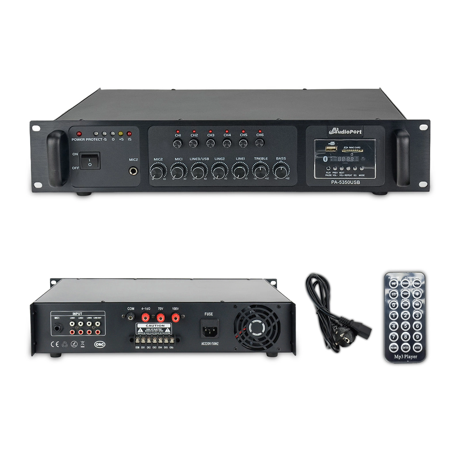 - 1x Wzmacniacz Audioport PA-5350 6-strefowy wzmacniacz PA 350W/ 100V