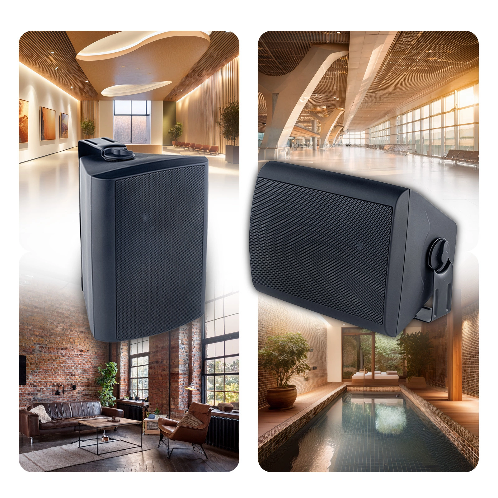Montaż na ścianie pozwala zaoszczędzić miejsce, a jednocześnie zapewnia efektywne nagłośnienie całej przestrzeni. Głośniki idealnie nadają się zarówno do komunikatów głosowych, jak i do odtwarzania muzyki w tle.