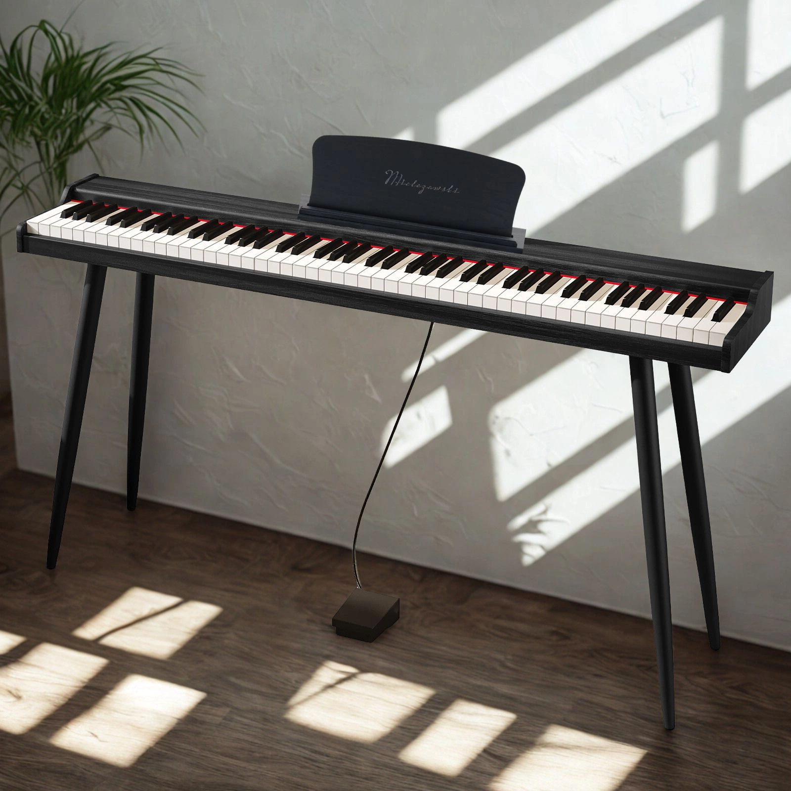 Pianino cyfrowe CANZONA w kolorze czarnym to doskonałe połączenie klasycznego wyglądu, wysokiej jakości brzmienia i nowoczesnych funkcji. Dzięki eleganckiemu wykończeniu oraz stabilnemu stojakowi z nogami instrument prezentuje się wyjątkowo stylowo – idealnie pasuje do salonu, pokoju muzycznego czy sali ćwiczeń. To pianino stworzone z myślą o osobach, które pragną cieszyć się grą niezależnie od poziomu zaawansowania.