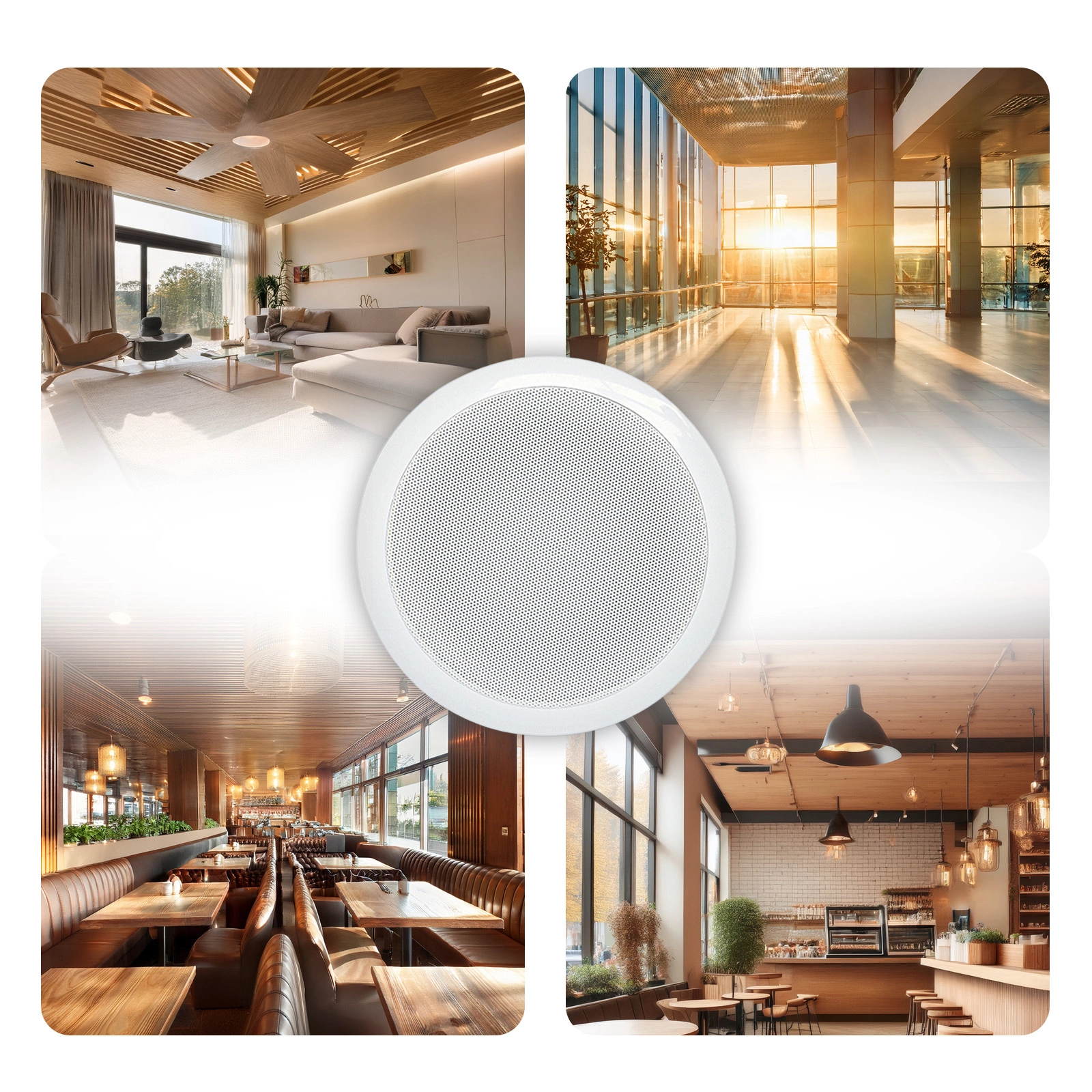 Nowoczesny, dyskretny i kompletny zestaw audio do zabudowy w suficie. Idealne rozwiązanie do domu, biura, sklepu, restauracji czy gabinetu. Bez widocznych kabli, bez wzmacniacza - tylko czysty dźwięk i minimalistyczny design.