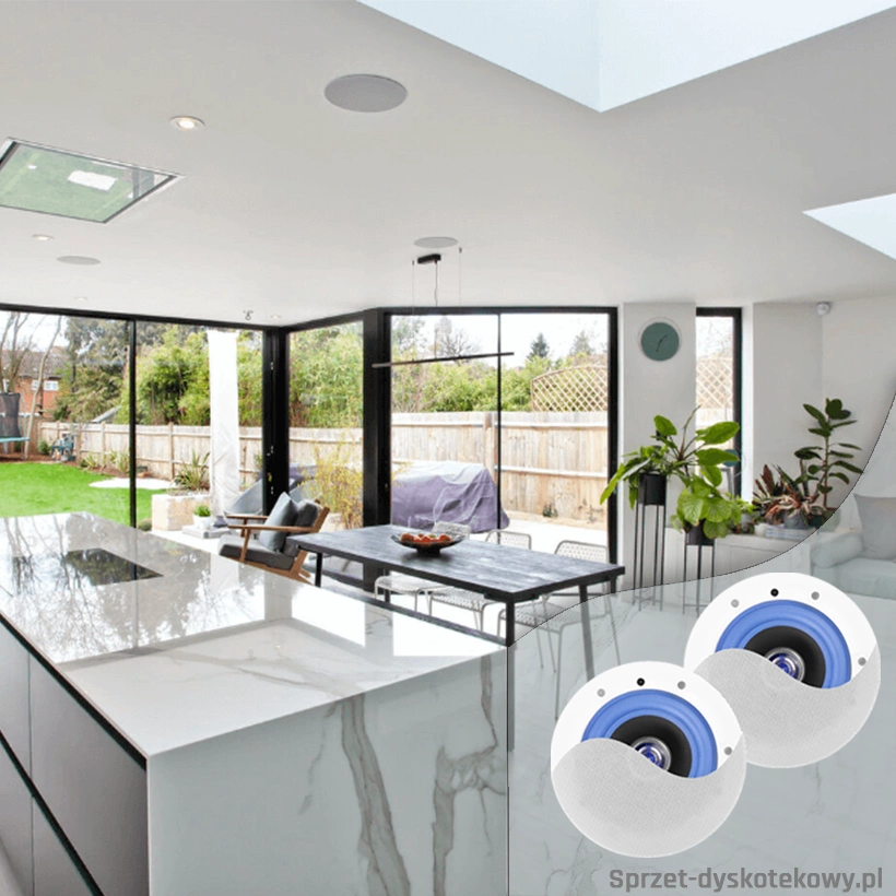 ESCS5 to zestaw głośników do zabudowy, który doskonale sprawdza się w biurach, poczekalniach, w domach (salon, kuchnia itp). Zestaw jest niskoprofilowy, co oznacza, że głośniki zapewniają bardzo eleganckie wykończenie po montażu. Grill nie jest opatrzony logo, a kratka wystaje tylko 2mm z sufitu. Głośniki są 2-drożne co zapewnia optymalną jakość dźwięku. ESCS5 jest dostarczany jako zestaw 2szt. Dzięki białej metalowej siatce magnetycznej głośniki sufitowe są idealne także do przestrzeni publicznych.