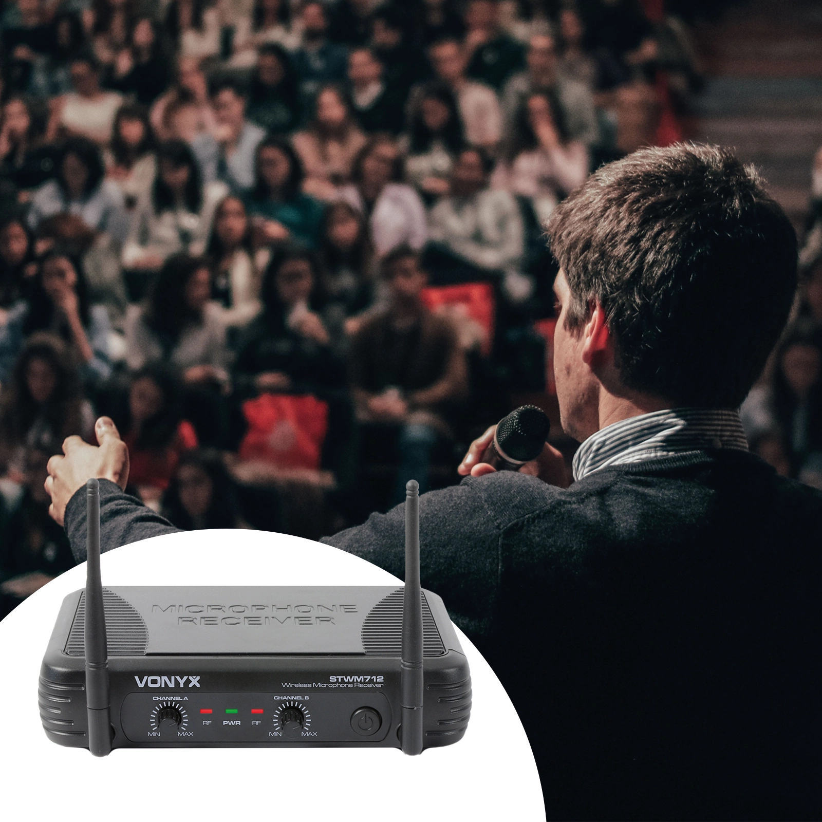 Vonyx STWM712 to 2-kanałowy zestaw bezprzewodowy 2x mikrofon VHF